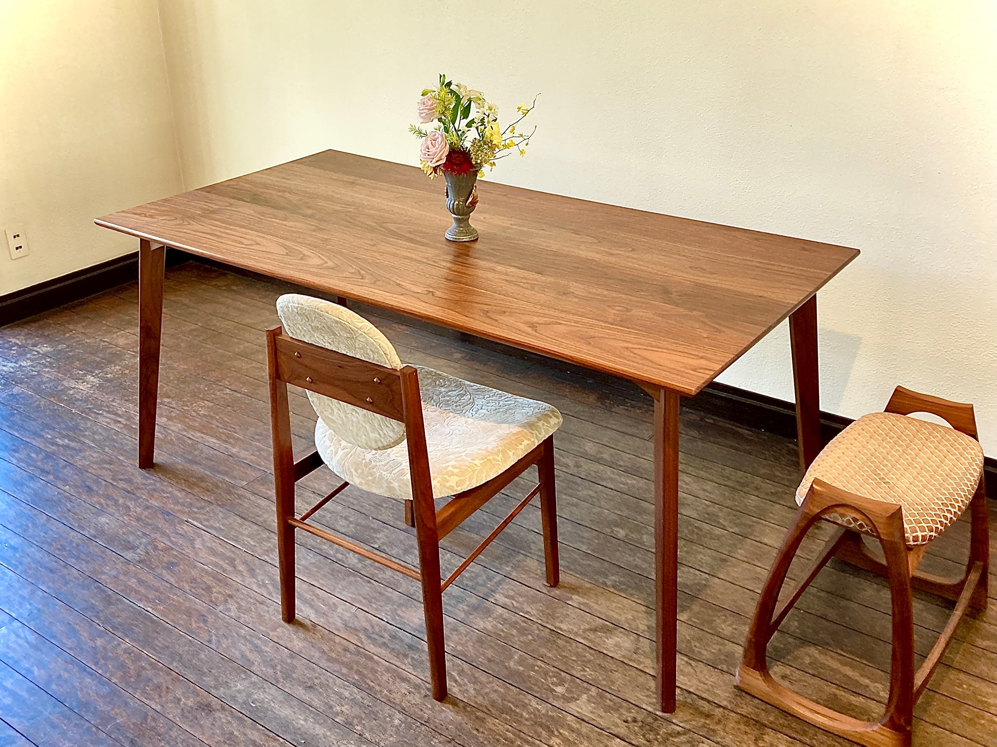 無垢のテーブルと聞くと重厚感があるイメージですがなるべくシャープにしたいと思い